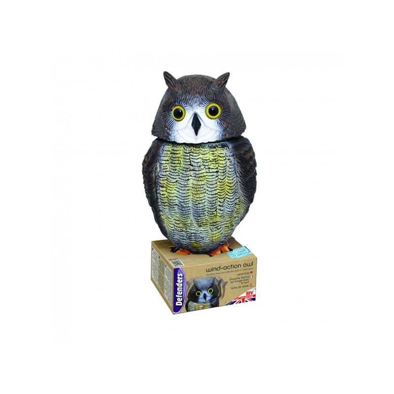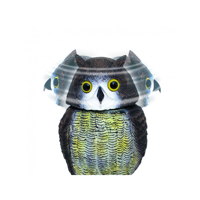 Sova má rotující hlavu, která se vlivem větru otáčí o 360 °. Díky jejím reflexním očím tato sova věrně napodobuje živou sovu.
